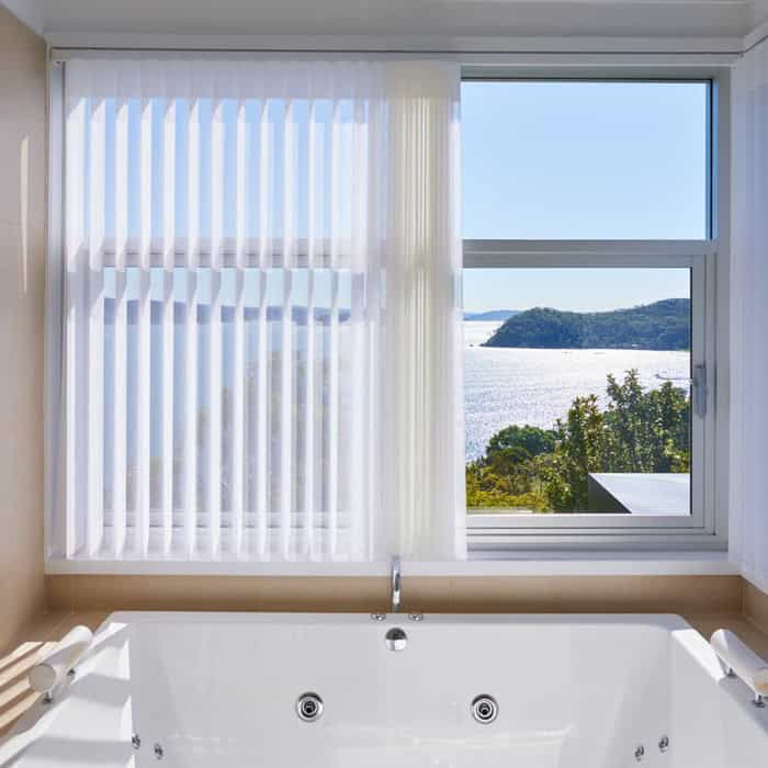 They feature soft, fabric “vanes” that hang like a sheer, yet rotate for control. The result is a window covering that looks calm and modern, while still offering practical privacy and light management for large doors and open-plan living.